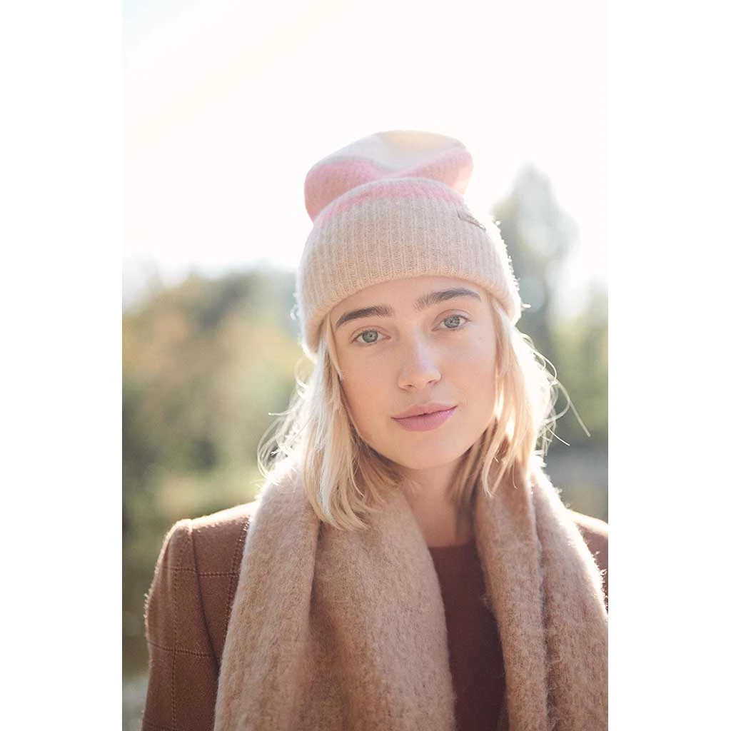 The Ounaa Beanie is a hat from the BARTS premium line. It’s made of a rich Alpaca Wool blend that is extremely soft, light, strong and hypoallergenic. It comes in a striped pattern and a high turn-up